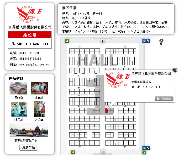 江蘇鵬飛集團(tuán)在廣交會上精心布置展位,印發(fā)各類設(shè)備的介紹手冊,整體模型展示水泥生產(chǎn)線產(chǎn)品,委派具有多年工作經(jīng)驗的銷售、技術(shù)、售后等專業(yè)人員為顧客詳細(xì)介紹新產(chǎn)品、新技術(shù),全面分析解答各類設(shè)備從購買到投產(chǎn)使用以及售后服務(wù)等每個環(huán)節(jié)的問題,為您排疑解難,與您達(dá)成共識。同時,也希望能和更多的國內(nèi)外公司加強(qiáng)聯(lián)系,互相合作,為客戶提供更加完美的產(chǎn)品。