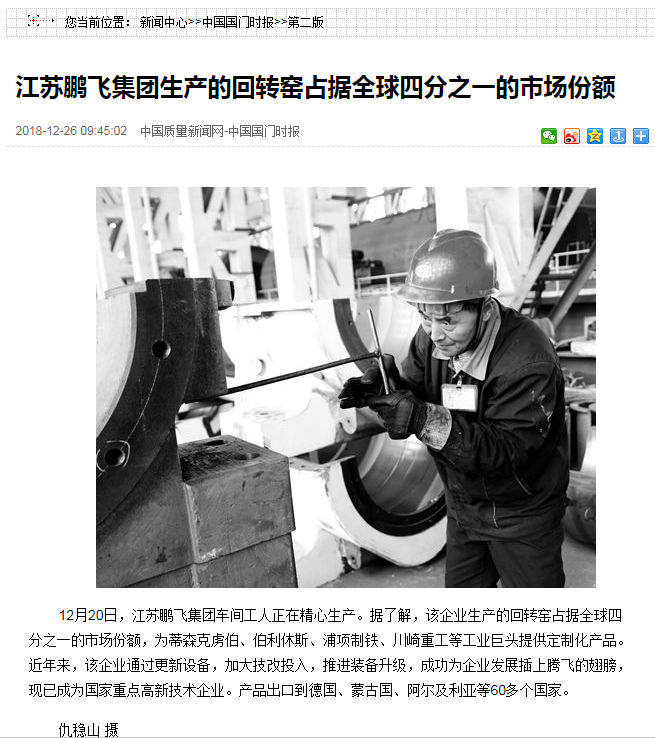 12月20日,江蘇鵬飛集團(tuán)車間工人正在精心生產(chǎn)。據(jù)了解,該企業(yè)生產(chǎn)的回轉(zhuǎn)窯占據(jù)全球四分之一的市場(chǎng)份額,為蒂森克虜伯、伯利休斯、浦項(xiàng)制鐵、川崎重工等工業(yè)巨頭提供定制化產(chǎn)品。近年來(lái),該企業(yè)通過(guò)更新設(shè)備,加大技改投入,推進(jìn)裝備升級(jí),成功為企業(yè)發(fā)展插上騰飛的翅膀,現(xiàn)已成為國(guó)家重點(diǎn)高新技術(shù)企業(yè)。產(chǎn)品出口到德國(guó)、蒙古國(guó)、阿爾及利亞等60多個(gè)國(guó)家。
