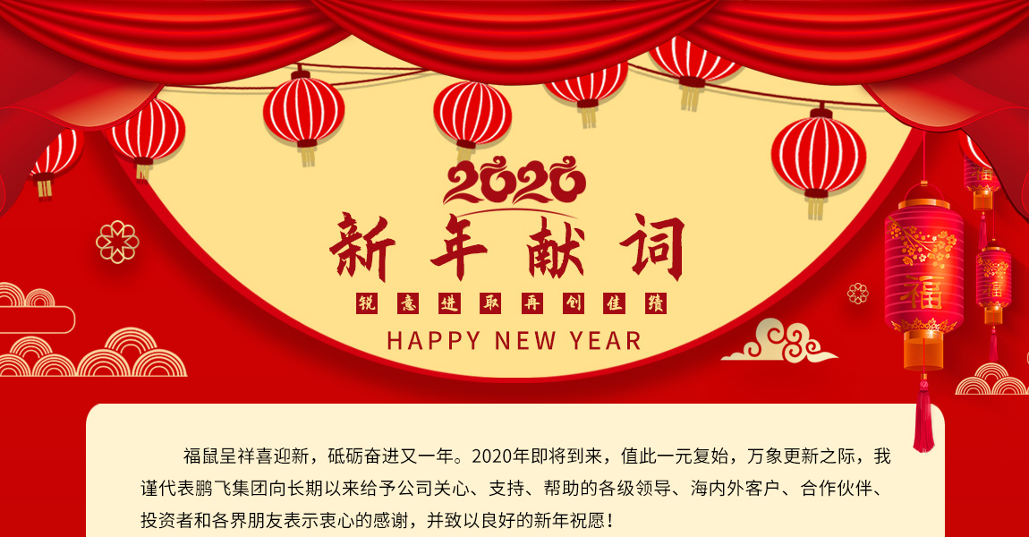 福鼠呈祥喜迎新,砥礪奮進(jìn)又一年。2020年即將到來,值此一元復(fù)始,萬象更新之際,我謹(jǐn)代表鵬飛集團(tuán)向長期以來給予公司關(guān)心、支持、幫助的各級領(lǐng)導(dǎo)、海內(nèi)外客戶、合作伙伴、投資者和各界朋友表示衷心的感謝,并致以良好的新年祝愿!