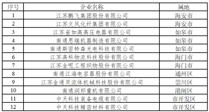 2019年度國家知識產(chǎn)權(quán)示范企業(yè)(南通12家)