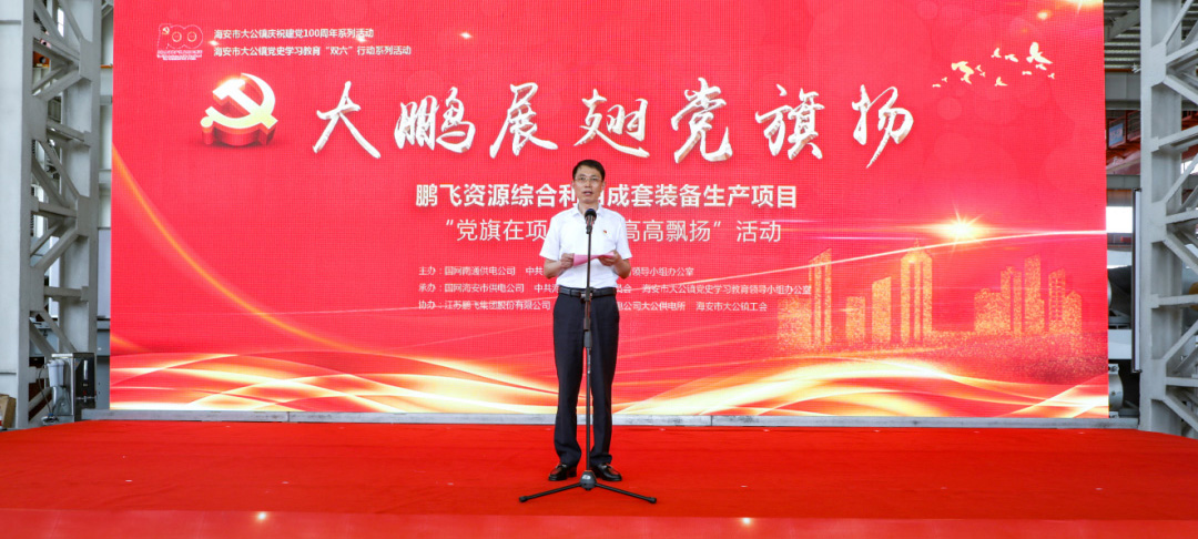 鵬飛資源綜合利用成套裝備生產(chǎn)項目是南通市第一批“黨旗在項目一線高高飄揚”啟動項目,由國網(wǎng)南通供電公司掛鉤聯(lián)系。“國網(wǎng)南通供電公司黨委把開展黨史學(xué)習(xí)教育作為一項重大政治任務(wù),發(fā)揮優(yōu)勢、凸顯特色,推動黨史學(xué)習(xí)教育與項目建設(shè)、服務(wù)企業(yè)辦實事等重點工作深度融合,做到建強(qiáng)堡壘,黨旗飄在項目一線;舉旗亮徽,黨員沖在項目一線設(shè)崗定責(zé),服務(wù)下沉項目一線。”國網(wǎng)南通供電公司副總經(jīng)理李秋實介紹如何國網(wǎng)公司將服務(wù)下沉項目一線時說道。
