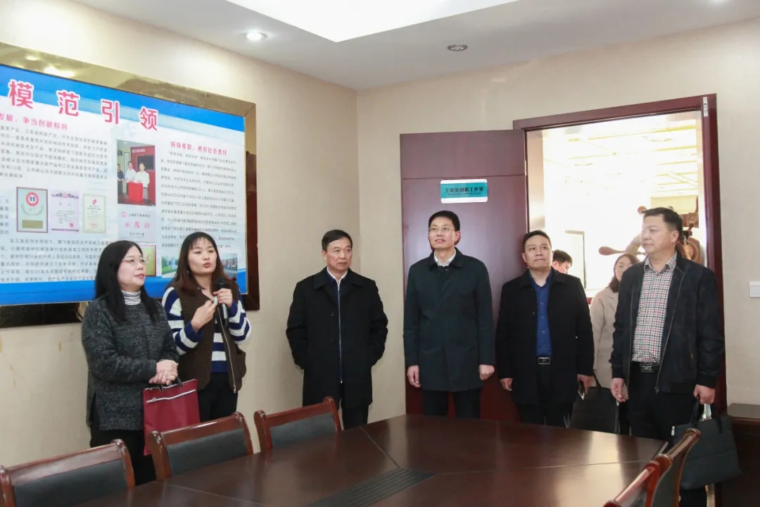 施偉慧一行參觀了王家安勞模創(chuàng)新工作室。公司董事長(zhǎng)王家安表示,創(chuàng)新工作室成立于2007年,現(xiàn)有成員19人。工作室圍繞市場(chǎng)需求開(kāi)展建材、環(huán)保、冶金、化工機(jī)械成套設(shè)備的研發(fā)設(shè)計(jì)、新技術(shù)的運(yùn)用與產(chǎn)品技術(shù)改進(jìn)工作。工作室累計(jì)完成12項(xiàng)國(guó)家、部、省級(jí)新產(chǎn)品開(kāi)發(fā),獲國(guó)家級(jí)新產(chǎn)品獎(jiǎng)2項(xiàng)、江蘇省首臺(tái)(套)技術(shù)裝備3項(xiàng),獲國(guó)家授予ZL權(quán)30項(xiàng)。