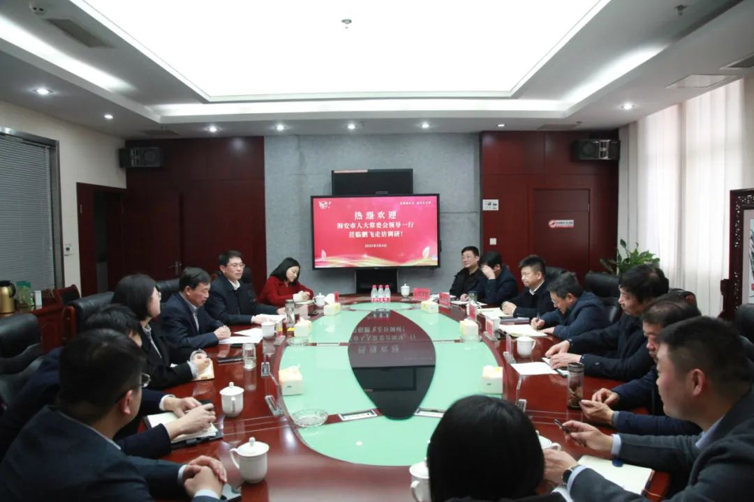 3月4日下午,市人大常委會(huì)副主任張忠宏、市人大常委會(huì)財(cái)政經(jīng)濟(jì)工作委員會(huì)主任錢祥健、市人大常委會(huì)專職委員徐瀧,發(fā)改委、行政審批局和生態(tài)環(huán)境局分管負(fù)責(zé)人一行到江蘇鵬飛集團(tuán)調(diào)研。大公鎮(zhèn)黨委書記金山存,黨委副書記、鎮(zhèn)長(zhǎng)魯競(jìng),鎮(zhèn)人大主席何雋,副鎮(zhèn)長(zhǎng)曹陽(yáng),江蘇鵬飛集團(tuán)董事長(zhǎng)王家安等參加會(huì)議。