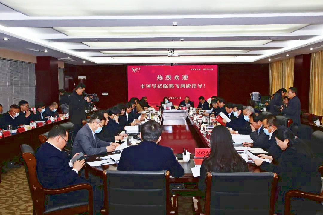 3月7日,市委書記于立忠率隊赴江蘇鵬飛集團開展調(diào)研。市委副書記、市長譚真,市人大常委會主任張亞曦,市委副書記張浩,市領(lǐng)導(dǎo)嚴長江、盧忠平、馬小飛、安譜昌、張颯參加活動。鎮(zhèn)黨委書記金山存,黨委副書記、鎮(zhèn)長魯競,副鎮(zhèn)長曹陽,江蘇鵬飛集團股份有限公司董事長王家安,等參加活動。