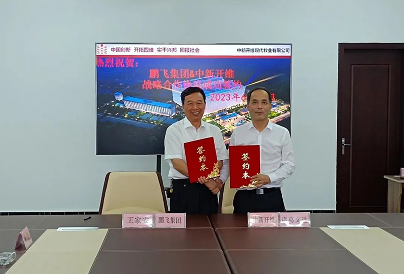 座談交流結(jié)束后,中新開維與鵬飛集團(tuán)共同簽訂了戰(zhàn)略合作協(xié)議,雙方將建立常態(tài)化交流聯(lián)系機(jī)制,加強(qiáng)全方位的合作,共謀高質(zhì)量發(fā)展新格局。衷心希望雙方以此次簽約為起點(diǎn),同心同向、攜手共進(jìn),把合作具體工作細(xì)化量化,推動水泥工業(yè)用回轉(zhuǎn)窯早日在食品生產(chǎn)領(lǐng)域創(chuàng)新應(yīng)用,打造食品行業(yè)規(guī)?;椭悄芑氖痉稑?biāo)桿,實現(xiàn)合作共贏,共創(chuàng)美好未來。