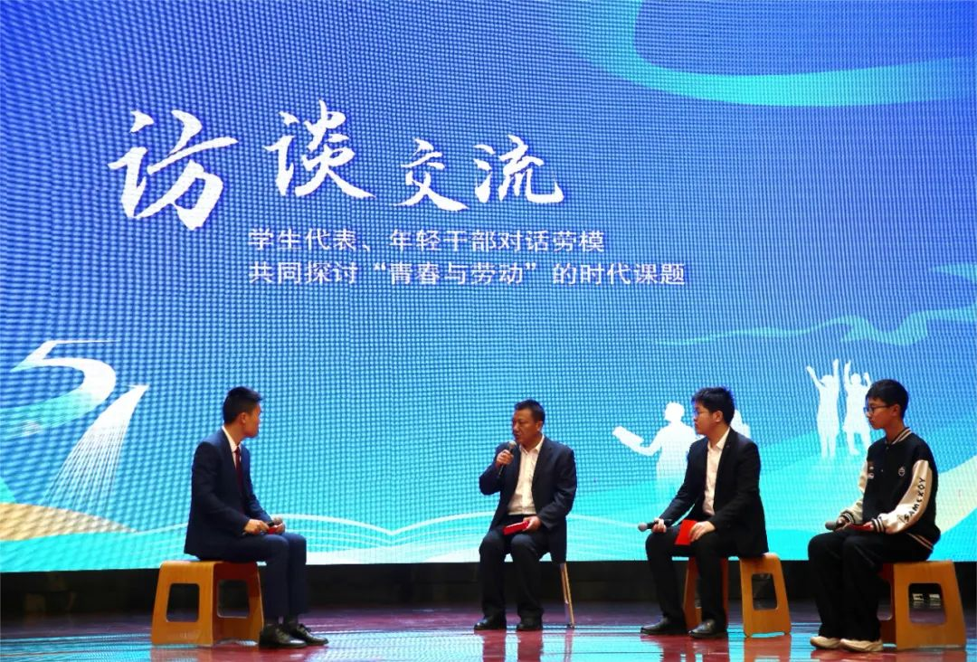 鵬飛集團鉗工車間主任、江蘇省“五一”勞動獎章獲得者周步高與年輕干部代表、學生代表等開展微訪談學