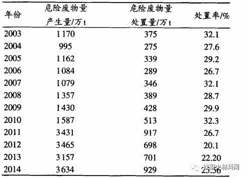 表1:2003—2014年中國工業(yè)危險廢物處置情況