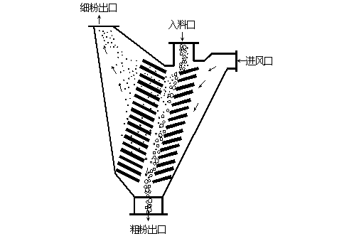 用于水泥粉磨的組合式選粉機,內(nèi)部結構還要做一定的調整、并采用袋收塵器收集細粉,一般不用旋風筒收集細粉,因旋風筒對微細粉的收集困難,會影響水泥早期強度。