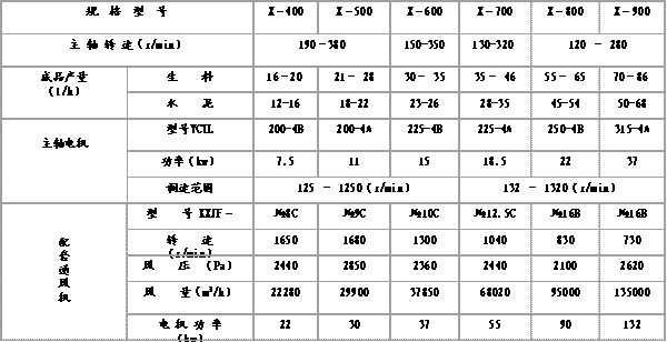 部分國產(chǎn)轉子選粉機的技術參數(shù)