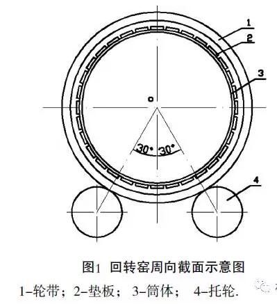 為解決回轉(zhuǎn)窯壓條頻繁掉落的故障,必須恢復(fù)輪帶內(nèi)表面與墊板外表面之間的間隙,使回轉(zhuǎn)窯在運(yùn)轉(zhuǎn)過(guò)程中輪帶剛好箍在筒體墊板上,降低墊板與輪帶的磨損,如直接更換輪帶與原墊板,不僅維修費(fèi)用高,而且工程量大。公司采取增加墊板的厚度和使用輪帶專(zhuān)用耐高溫固體潤(rùn)滑劑以予解決。