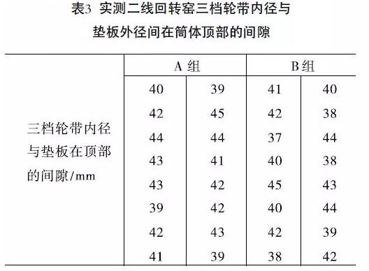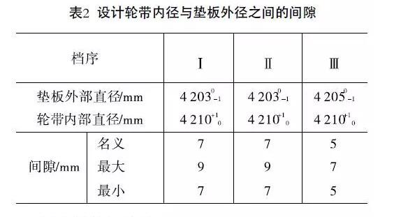 我們對(duì)2線(xiàn)三檔輪帶內(nèi)徑與墊板外徑在筒體頂部的間隙進(jìn)行測(cè)量,測(cè)量數(shù)據(jù)見(jiàn)表3